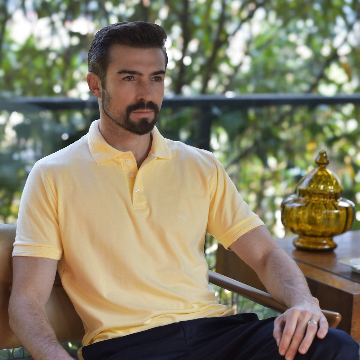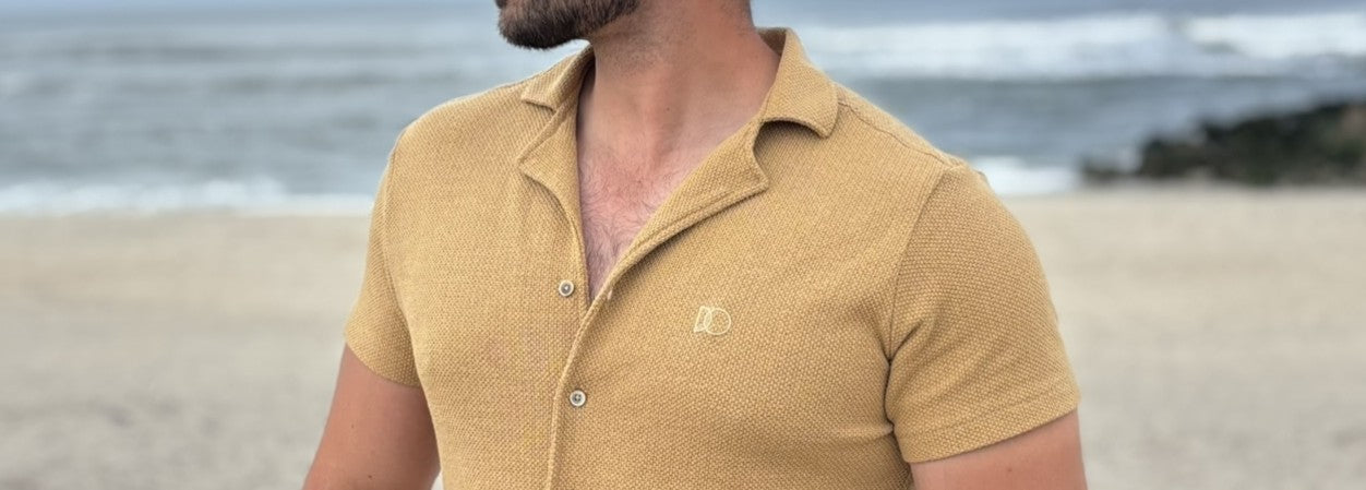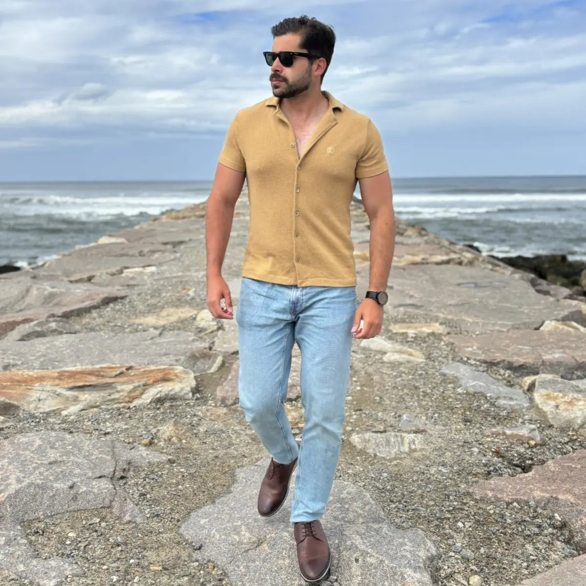 Camisa Gola Cubana Malha Texturizada Mostarda